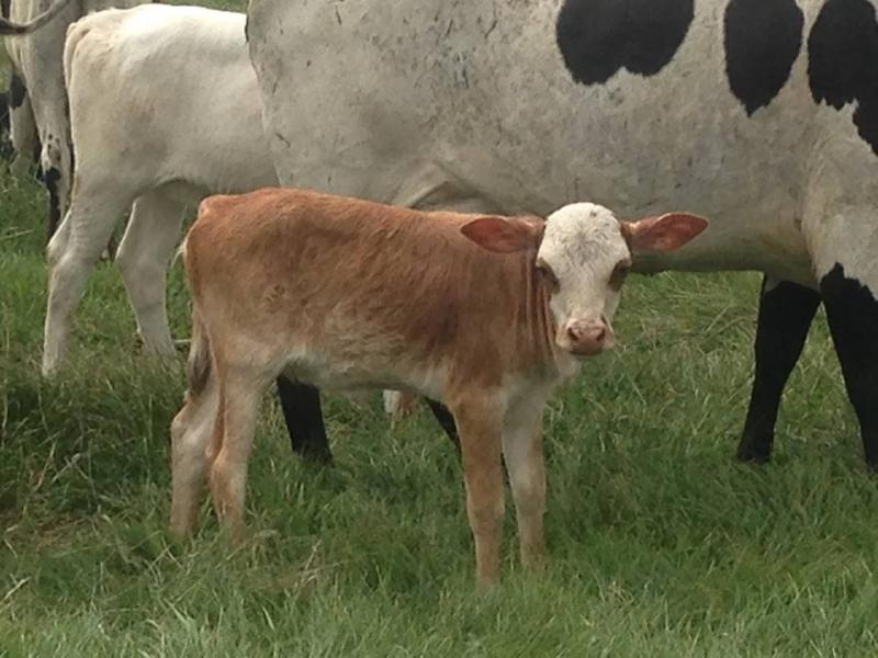 Red Handed out of Rose by Hurricane. April 29. 21inches/25lbs. He is an upside down calf. We were hoping for a lineback and got a linebelly. He is red with a white underline and a frosted face. This guy was up and active as quick as any calf we have raised. I was impressed. Not the best picture, he won't stand still. A great little bull. Have to keep an eye on this one.