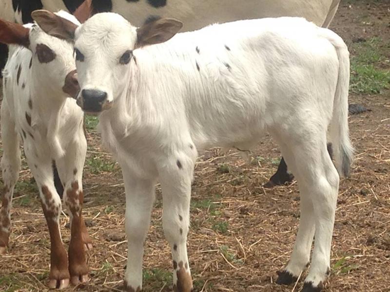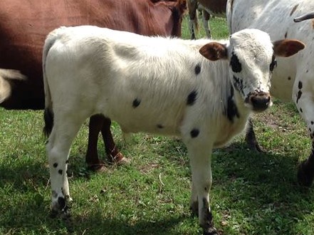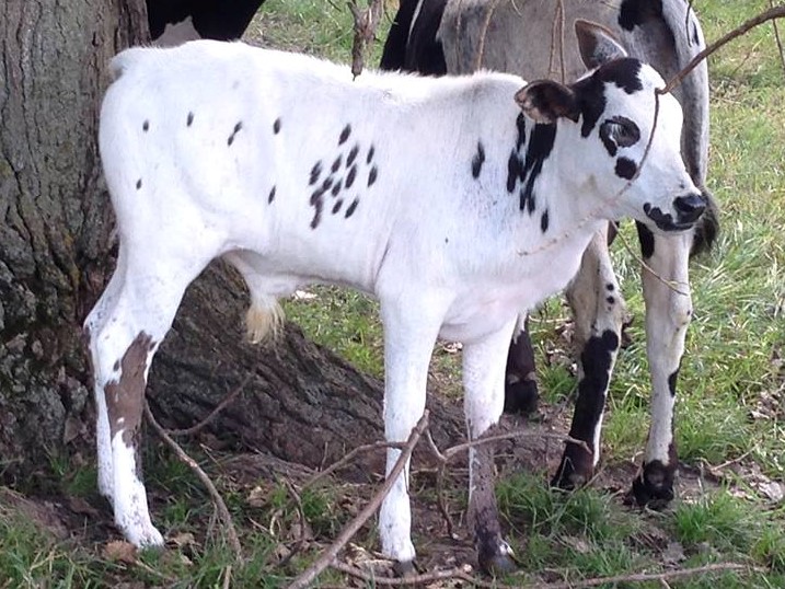Bull out of Stella by Prince (31 inches) a loud black and white bull. Registered zebu with IMZA. We bought this cow bred. Born July 3, 23inches/35lbs. This guy will all lots of color to any herd. FOR SALE $1000