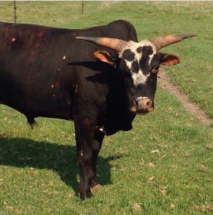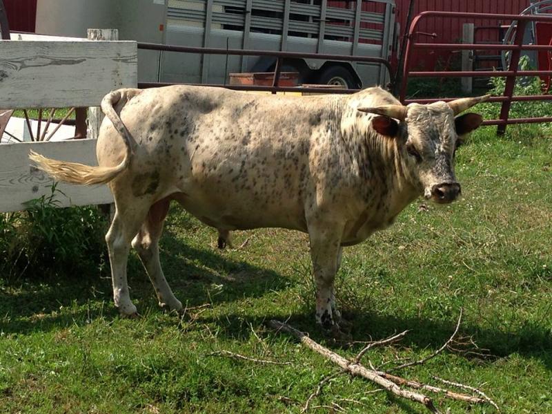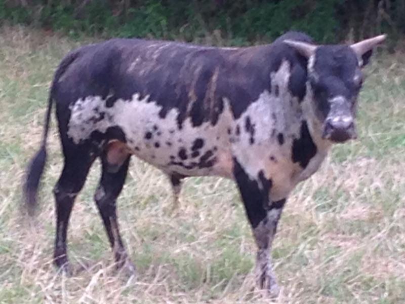 Sugar Cain, definitely a bull that left his mark. He has the same mother as Bullwinkle. We had calves from him from 2009-2014. We have sons and daughters and their offspring in the herd. He was 36 inches and 400lbs. He threw about every color and pattern imaginable.