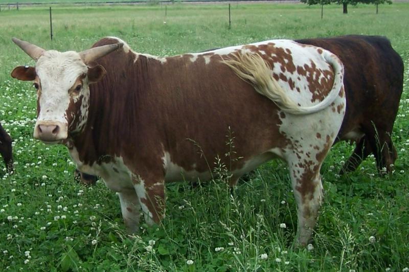 Freckles was a dandy. He is sire of Sugar Cain and grandsire of Hombre. We have lots of his blood in the background of our herd. We kept quite a few daughters from him but Sugar Cain was the most influential. He was 34 inches/450 lbs.